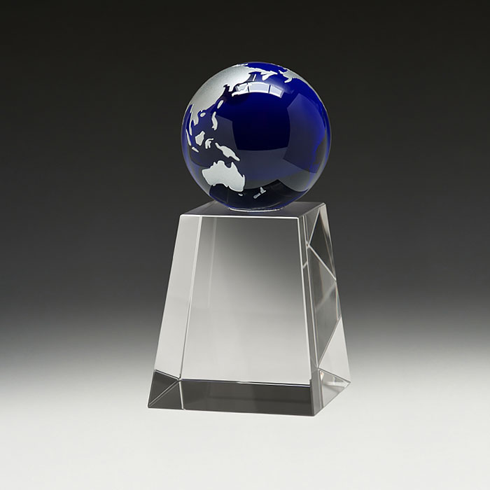 The Advance Blue Globe Crystal Awards are part of our premium corporate range. Featuring a blue crystal world globe on crystal base. These stunning awards come supplied in a quality gift box. The price includes free frosted (etched) engraving. If you would like to receive artwork proofs for your approval before manufacture, please let us know in the additional comments section upon checkout.