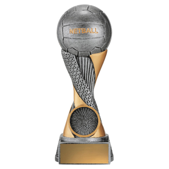 The Apex Netball trophy features a fresh and stylish design with multi-textured elements. Finished in brilliant antique silver and gold colours. These trophies are available in 3 sizes and include your free club logo centre and free engraving on a gold metal plate.
