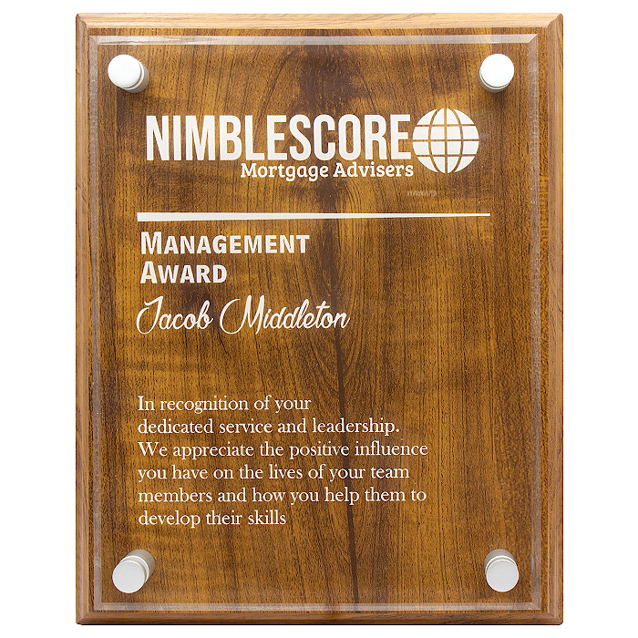 The Artisan Walnut Floating Acrylic Plaques are part of our premium timber/wood corporate range. The price includes free frosted (etched) engraving. If you would like to receive artwork proofs for your approval before manufacture, please let us know in the additional comments section upon checkout.