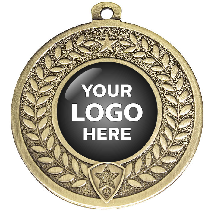The Budget Distinction medal features an iconic laurel wreath and star combination. The medal offers a prominent central space for your free 25mm club/event logo centre. Available in gold, silver or bronze. 50mm in size. Each medal includes free engraving on the reverse side and a free neck ribbon in your choice of colour.