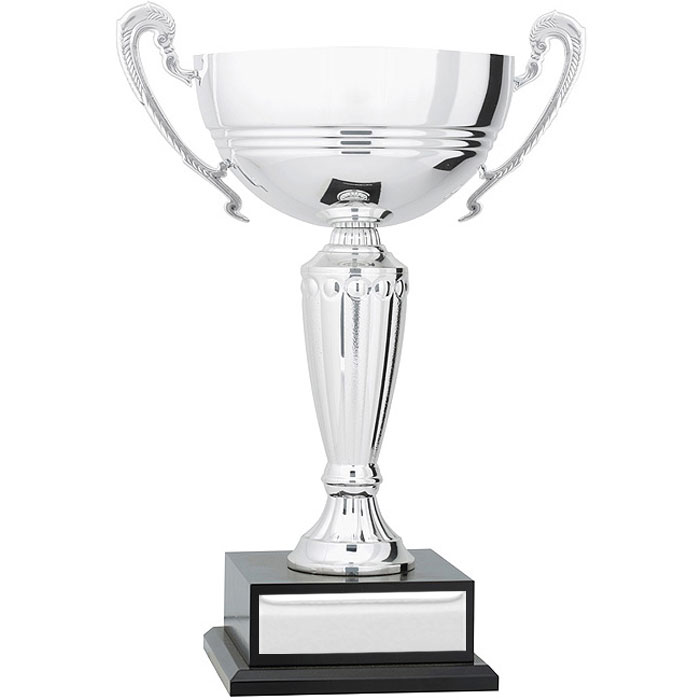 The Cortona Silver cup presents a superbly crafted and elegantly designed trophy cup. Finished in silver colour with a traditional timber base. Available in 3 impressive sizes and includes your free engraving on a silver metal plate.