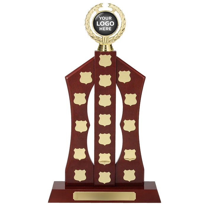 The Crescent Wing Timber Perpetual trophy is perfect for celebrating the achievements of your award winners. This huge 490mm timber award is sure to stand-out at your event! The price includes your logo presented as a 50mm domed disc on the top of the perpetual, free engraving of your title plate and the first winner’s mini shield if known at the time of ordering.