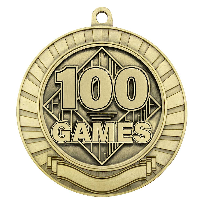 The Eco Scroll 100 Games Medal is the perfect way to recognise the achievements of your long-standing players! Finished in a brilliant gold colour and featuring a larger 70mm size, this striking medal truly stands out. Price includes free engraving and a neck ribbon in your choice of colour.