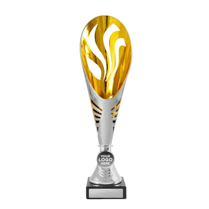 The Equinox Cup features a stunning coloured interior with a cutout swirl patterned deisgn. With 11 different colour combinations and 4 sizes to choose from you are sure to find the perfect award for your event. Each cup is nicely completed by a black marble base. Price includes your free engraving and free logo centre. Any image can be added as the logo centre – whether it be a club or business logo or design your own!