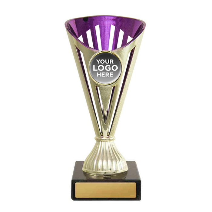 The Fan Cups offer incredible value! Featuring a beautiful fan cutout design revealing a coloured interior. With 6 different colour combinations and 5 sizes to choose from you are sure to find the perfect award for your event. Each cup is nicely completed by a black marble base. Price includes your free engraving and free logo centre. Any image can be added as the logo centre – whether it be a club or business logo or design your own!