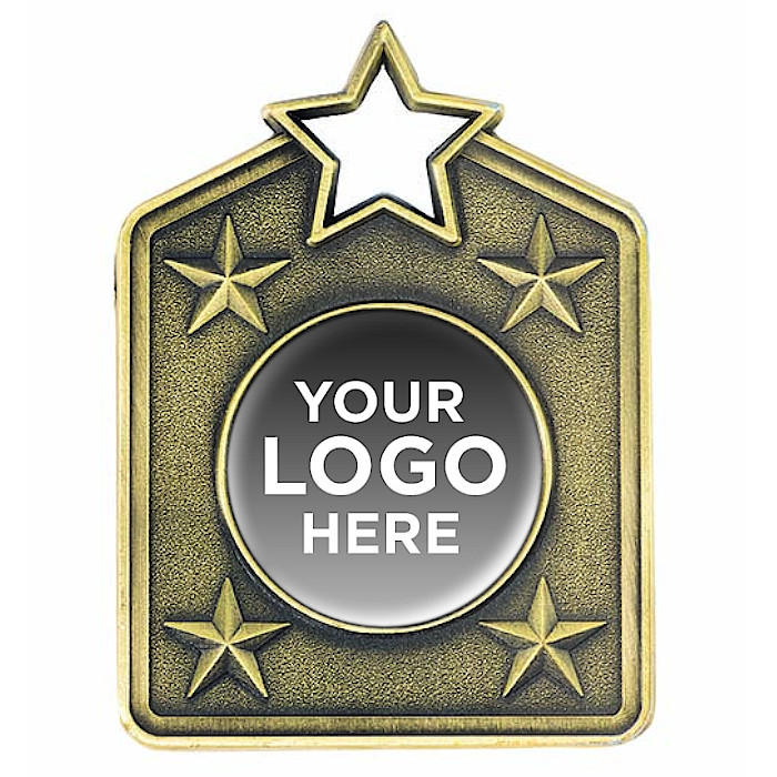 With a unique rectangle shape and star detail the Galaxy medals really catch the eye! Featuring a prominent space for your free 25mm club/event logo centre, these great value medals are available in gold, silver or bronze. Each medal includes free engraving on the reverse side and a free neck ribbon in your choice of colour.