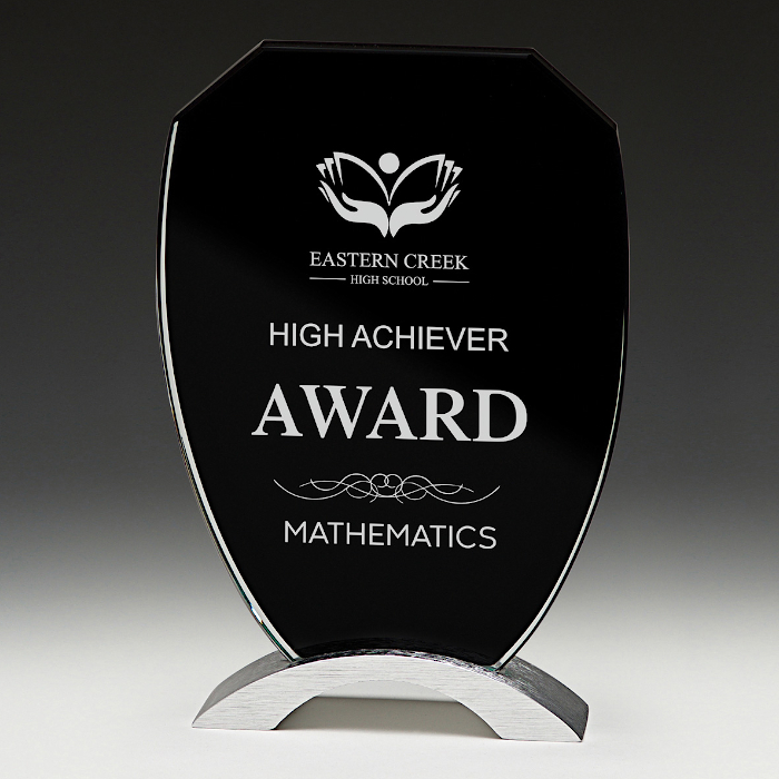 The Glass & Metal Volley Awards are part of our extensive corporate range. These sophisticated awards feature an black panel for your engraving within a larger design of clear glass, held aloft by a metal base. Price includes the addition of your logo and frosted (etched) engraving. If you would like to receive artwork proofs for your approval before manufacture, please let us know in the additional comments section upon checkout.