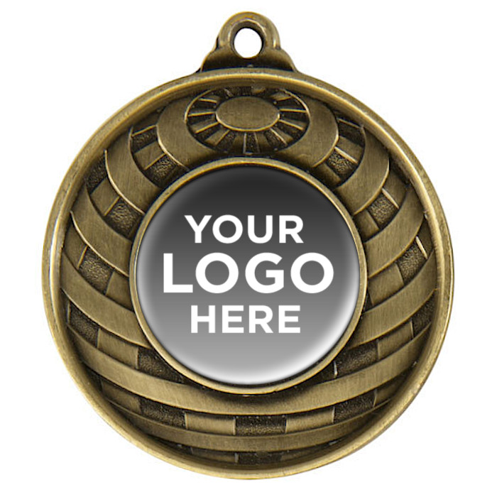 The Global Logo Generic Medals feature an impressive global sphere 3D theme and offer a prominent central space for your free 25mm club, school, business or event logo centre. Presented in a 50mm size finished in antique gold, silver or bronze. Each medal has space on the back for your free engraving requirements and comes with a free neck ribbon in your choice of colour.