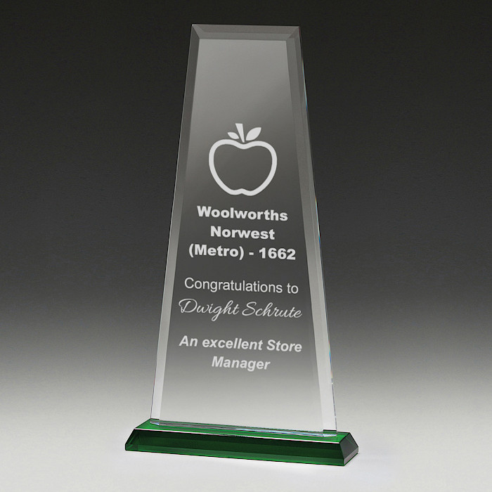 The Guardian Green Glass Awards are part of our extensive corporate range. These striking glass awards offer a premium choice for recognition and appreciation. Price includes the addition of your logo and frosted (etched) engraving. If you would like to receive artwork proofs for your approval before manufacture, please let us know in the additional comments section upon checkout.