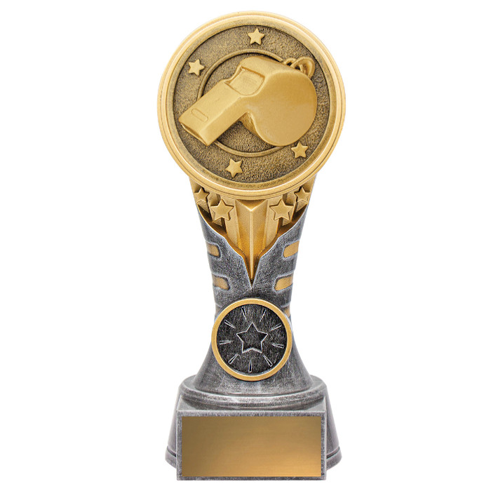 The Ikon Whistle trophy offers a brilliant multi-coloured and textured design with extra weight making it ideal for range of recognition purposes. These great value and durable trophies are quickly becoming one of our most popular award series! They are available in 3 sizes (150mm, 175mm or 200mm) and include space for your free school, club or event logo centre and free engraving on a gold metal plate.
