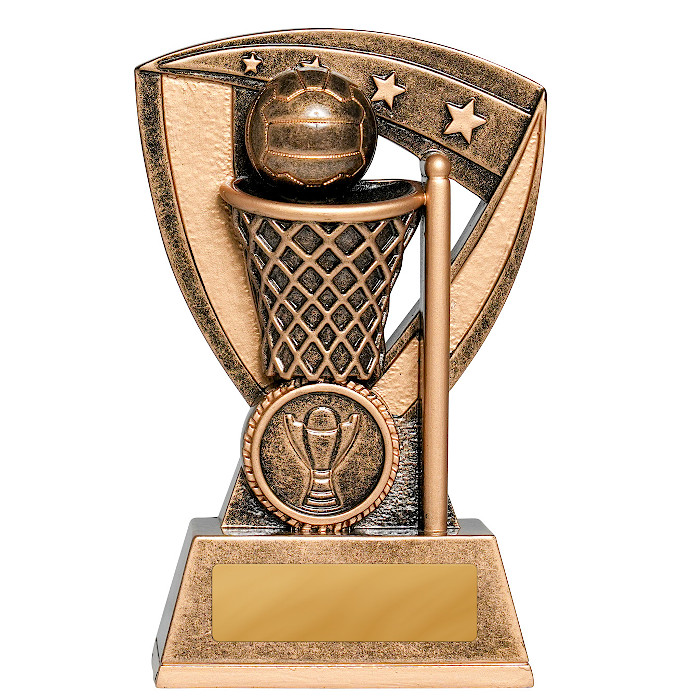 The Ios Netball trophy provides a fantastic option for your sport stars! The price includes free engraving on a gold metal plate and the inclusion of your logo at no additional cost. These great value netball trophies are available in the following sizes: 120mm, 140mm, 155mm.