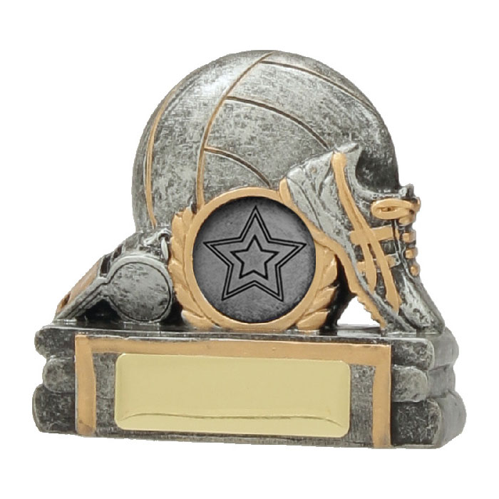 Look no further for an affordable trophy option for your netball team or club! The Netball Mini Silver trophy features a ball, shoe and whistle detail – finished in traditional antique silver with gold highlights. This great value netball trophy is available in 1 size and the price includes your free club logo centre and free engraving.