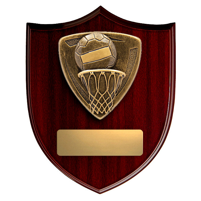 The Nova Shield Netball Award provides a nice alternative to a traditional trophy. The shield features a masterfully crafted 3D antique gold motif showcasing your chosen sport/activity. Your complimentary engraving is elegantly displayed beneath the design on a metal plate. These classic gloss rosewood shields feature both a wall mount and desk stand option on the reverse side of the award. Size: 160mm high