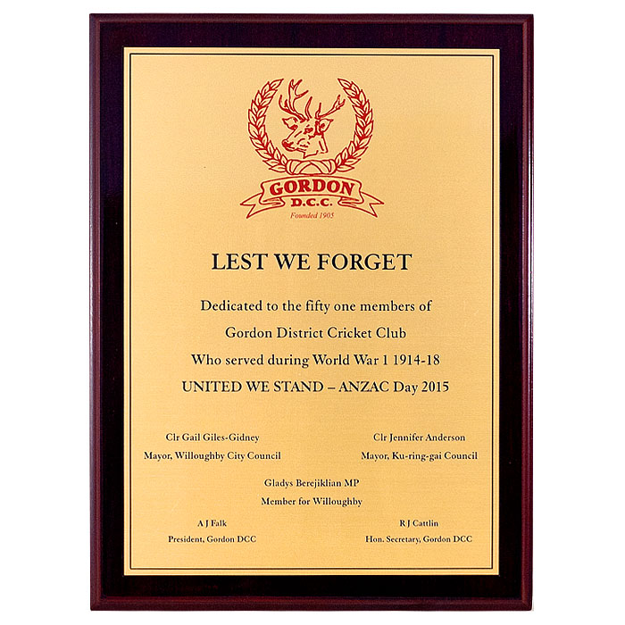 The Rosewood Wall Plaques (with brushed gold plates) are part of our extensive corporate range. These outstanding awards offer a premium choice for recognition and appreciation. Featuring a gloss rosewood timber plaque with a brushed gold face plate. These are engraved to show black wording and logo details. Can be hung on the wall or stand on a desk with the supplied rod stand. The price includes free frosted (etched) engraving or you have the option of UV colour printing for an additional cost.