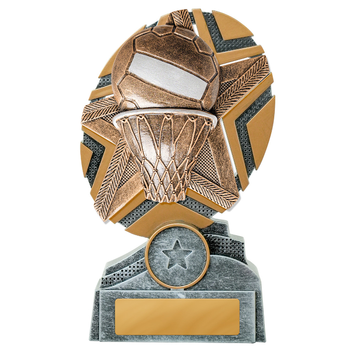 The Starburst Netball trophy presents a dazzling star-shaped design with a detailed 3D motif. These trophies are available in three convenient sizes (130mm, 150mm, or 170mm). The price of your trophy includes the free addition of your club, school, or event logo and free engraving on a gold metal plate.