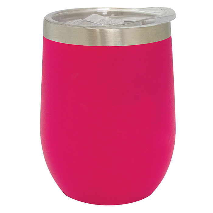 The Pink Stemless Wine Tumbler is part of our premium drinkware range. Laser engraved to reveal a silver design with your club/business logo and choice of wording. A popular and useful award/gift idea particularly suited to recognise the achievements of your participants/employees. Made from stainless steel, the double walled insulation keeps contents cold drinks cooler and hot drinks hotter for longer. The handy sliding lid helps prevent spills. Powder coated for extra durability (not recommended for dishwashers).