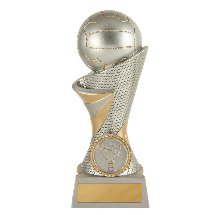 The Storm Tower Netball trophy features an elevated ball atop of a patterned tower. It offers a stylish option to recognise the hard work put in by your superstars. Finished in matt silver colour with gold highlights. These netball trophies are available in 5 sizes and include space for your free club logo centre and free engraving.