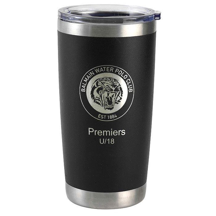 The Black Tumbler is part of our premium drinkware range. Laser engraved to reveal a silver design with your club/business logo and choice of wording. A popular and useful award/gift idea particularly suited to recognise the achievements of your participants/employees. Made from stainless steel, the double walled insulation keeps contents cold drinks cooler and hot drinks hotter for longer. The handy sliding lid helps prevent spills. Powder coated for extra durability (not recommended for dishwashers).