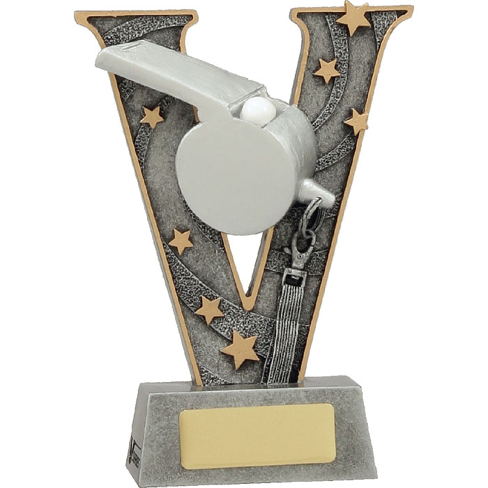 The V-Series trophy offers a dynamic, star and victory inspired design combined with a classic finish of antique silver and gold highlights. Perfect for umpires, referees, coaches and other suitable recipients. Available in 1 size with space for your free engraving.