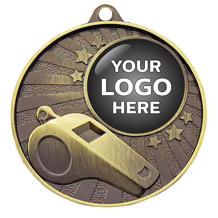 The Wisdom Medal – Whistle Gold features a whistle design with a prominent space for your free club or event logo centre. These great value whistle medals are perfect for recognising your officials, referees, coaches and managers. 52mm size. Each medal has space on the back for your free engraving requirements and comes with a free neck ribbon in your choice of colour.