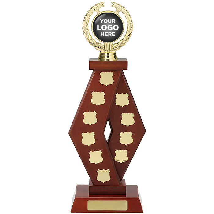 The X-Wing Timber Perpetual trophy is a popular choice to create a stand-out perpetual trophy. The price includes your logo presented as a 50mm domed disc on the top of the perpetual, free engraving of your title plate and the first winner’s mini shield if known at the time of ordering.